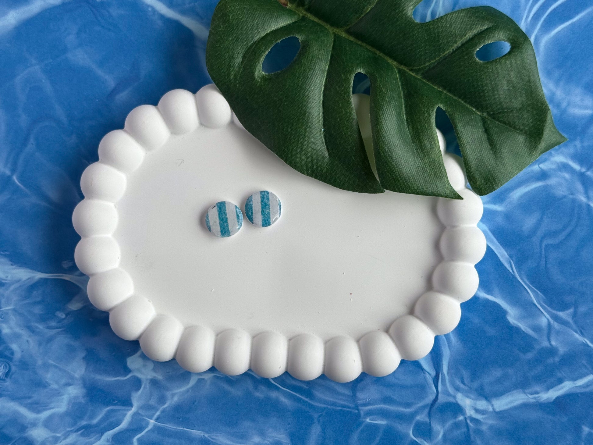 Small Blue and White Cabana Striped Studs